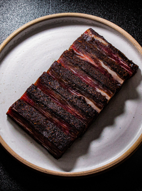 14 hours smoked brisket, horseradish cream, cornichons, dill, crispy capers.