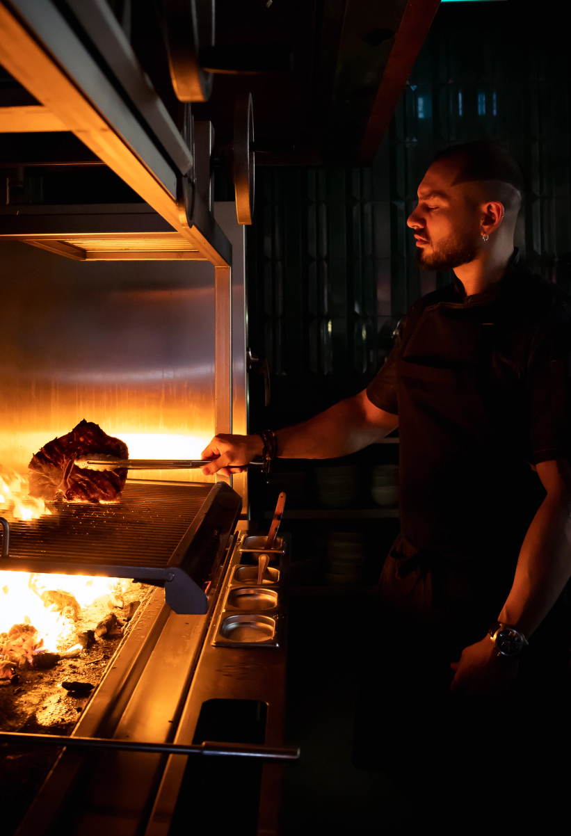 Chef Brando Moros honors the gifts of nature through the gastronomic experience. He has spent over 10 years perfecting the art of wood-fire grilling, understanding the fire and its nature, heat, aromas, and textures.